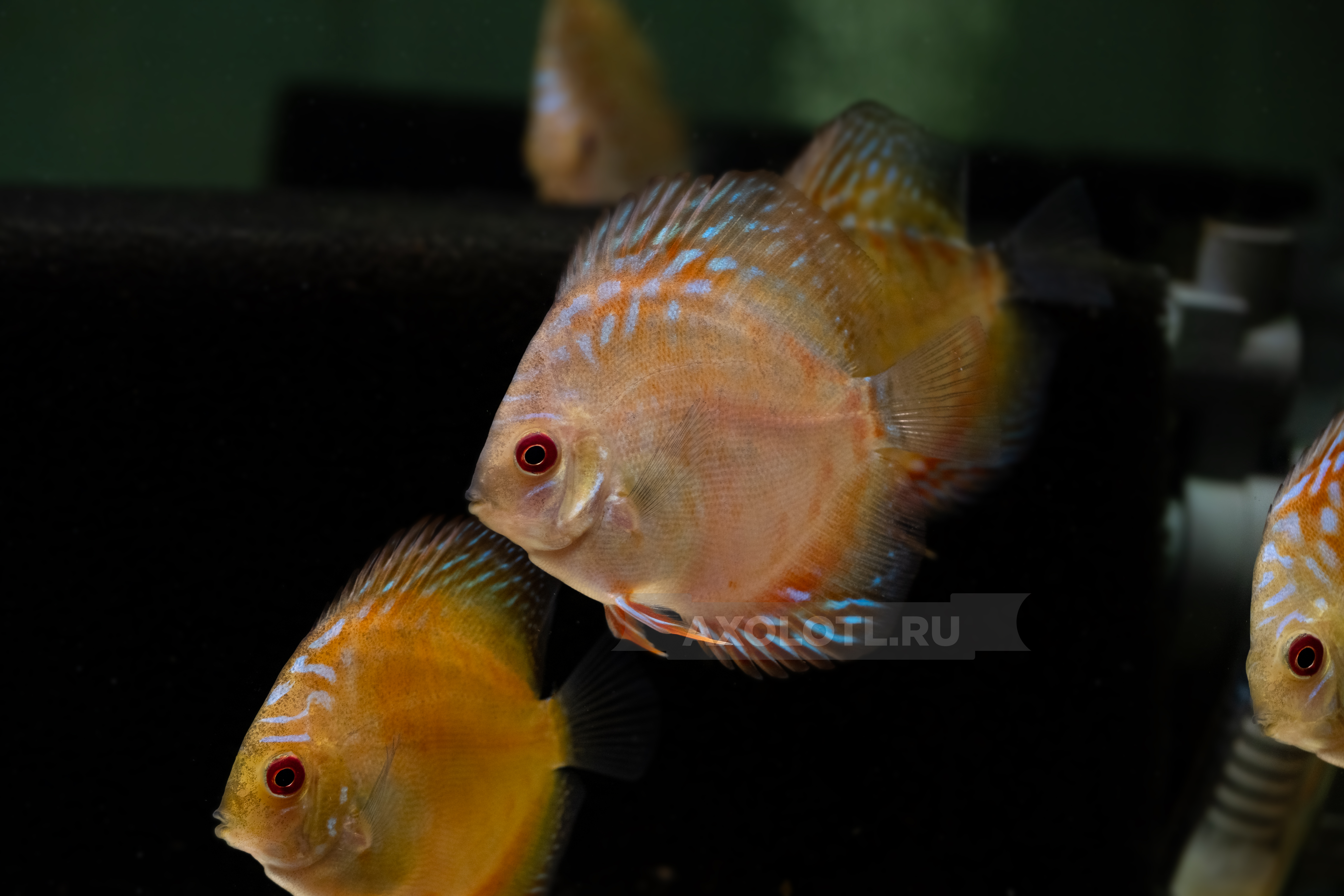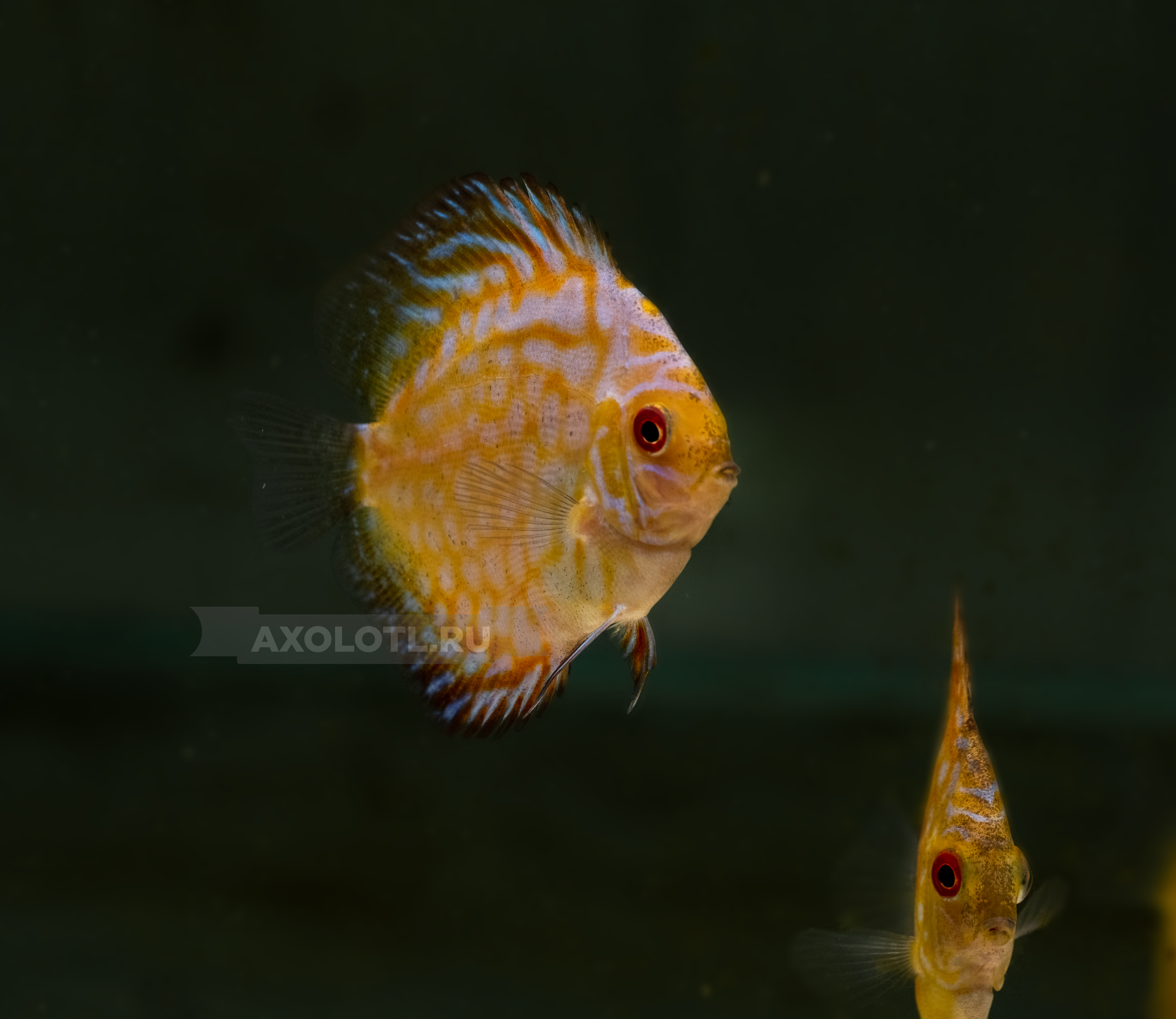 В юности отличить самок дискуса от самцов почти не возможно. Первая возможность начинать определяться с полом появляется тогда, когда они начинают делиться на пары. У юных дискусов обеих полов округленные спинные плавники, и различить их по спинному плавнику можно попробовать только, когда они вырастут. Так как с нашей стороны никак мы добиться скорого роста и полового различия соответственно не сможем, остается только наблюдать.