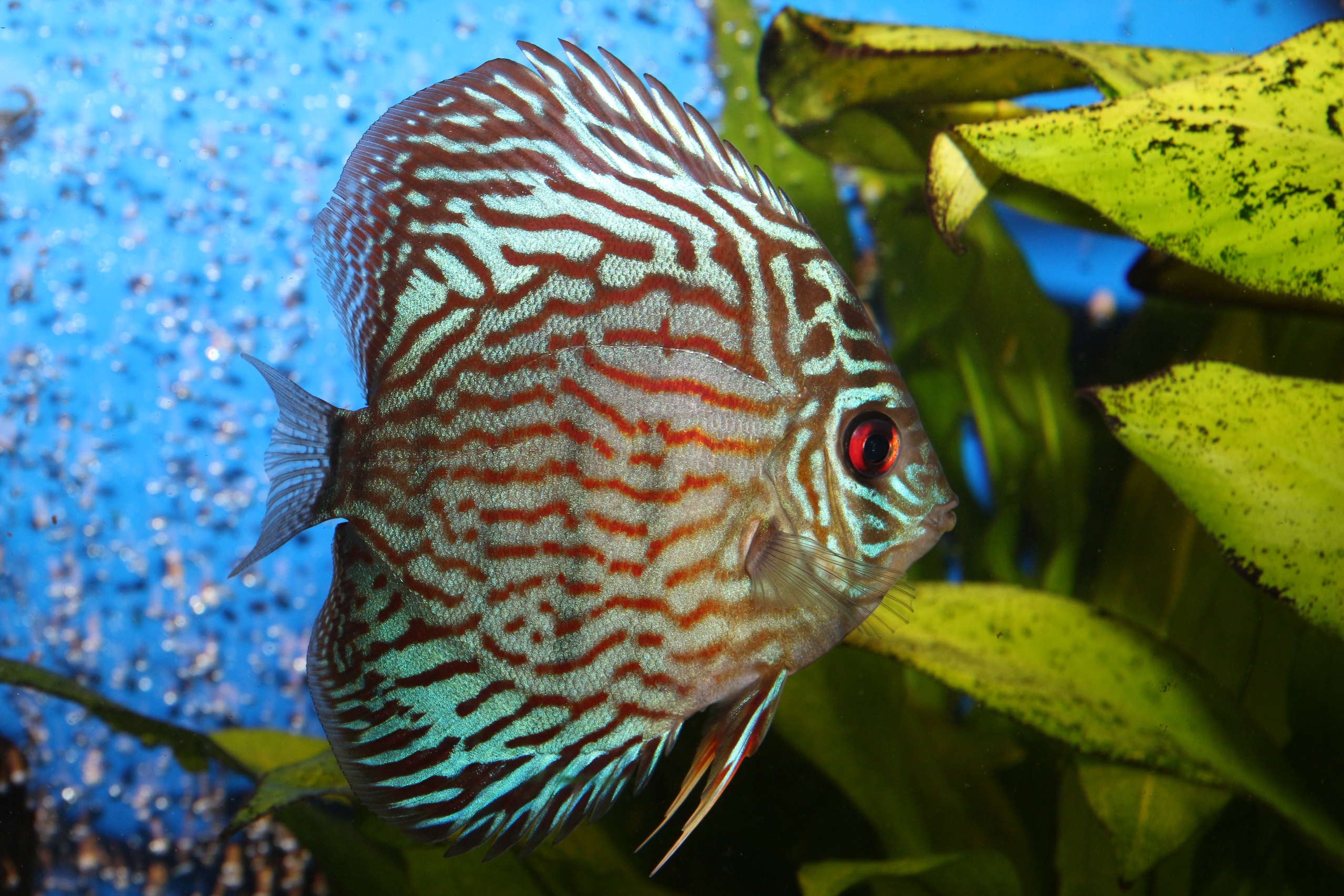 Каждый человек, который любит и содержит аквариумных рыбок дискус, должен знать, как за ними ухаживать, чем кормить дискусов, и все тонкости этой разновидности рыб. Кормить дискусов нужно 2 раза в день, — при этом нужно, чтобы корм не оставался на поверхности воды в аквариуме, длительное время: длительное нахождение корма в воде увеличивает уровень аммиака, а это очень вредно для рыб. Поэтому нужно, чтобы рыбы съедали весь корм на протяжении 5-10 минут. Дискус не очень охотно питается с поверхности аквариума, поэтому лучше, если корм находится на дне аквариума. Существует три разновидностей корма для дискусов – живые корма, замороженные и сухие. Живым кормом для дискуса является мотыль и трубочник. Многие аквариумисты утверждают, что мотыль обязательно должен присутствовать в корме дискуса, поскольку он способствует правильной работе кишечника рыбы.Рыбок кормят живым кормом (мотыль и трубочник, артемия им не очень нравится) или специально приготовленным фаршем, не лишними будут и качественные корма с витаминами и добавками для цвета.