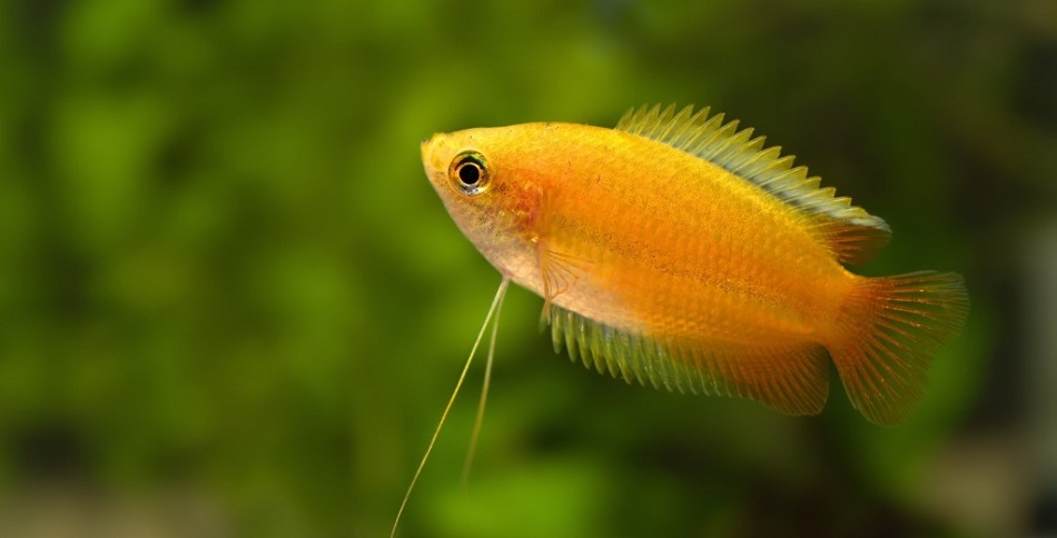 Гурами медовый золотой - небольшая мирная рыбка с сжатым с боков телом.
