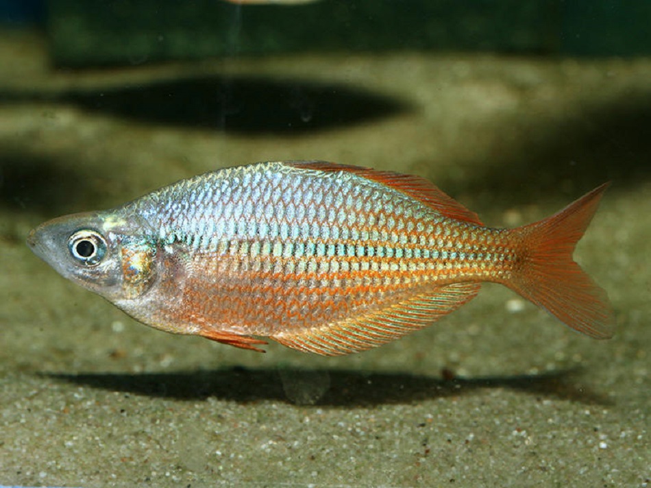 Тело взрослых рыб сильно сжато с боков, высокое, ромбовидное из-за заостренной головы и сравнительно узкого хвостового стебля. Длина самца этой радужницы до 9, самки до 8 см. Много локальных форм, общее описание окраски невозможно. Серебристая чешуя отливает всеми оттенками синего, голубого, бирюзового и коричневого цветов. Между рядами чешуи нередко тянутся красноватые полоски. Второй спинной и анальный плавники невысокие, но длинные и украшают тело узорчатой каймой, красной к краю и пятнистой у основания. У взрослых самцов хвостовая лопасть, спина, верх головы и жаберные крышки окрашены в пурпурный цвет и кажутся бархатистыми. Нерестящиеся самцы обладают настолько яркой окраской, что начинающие любители путают их с красными глоссолеписами (Glossolepis incisus). Самцы высокотелые и ярче окрашены.