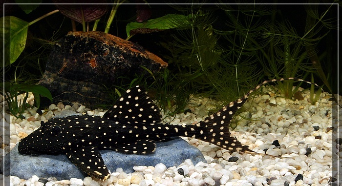 Хорошо уживается с другими представителями семейства до половозрелого возраста, в дальнейшем возможны сражения. С достаточно крупными представителями других семейств верхних уровней уживается хорошо. Питается различными продуктами – таблетками со спирулиной, салатом, огурцом, креветками, мидиями, мотылем, личинками насекомых, таблетками для донных рыб и др. Молодые особи питаются преимущественно соскабливая водорослевые обрастания с коряг. Размножаться начинают в возрасте 8 лет. Продолжительность жизни до 16 лет. Должна быть обеспечена хорошая аэрация, аквариум оснастить корягами, необходима частая подмена воды, а также хороший поток воды в аквариуме . Растения не едят, но могут выкорчевывать, так что нужно сажать растения в горшочки и обкладывать камнями. Рыба нижнего уровня, наиболее активна в вечернее и ночное время.