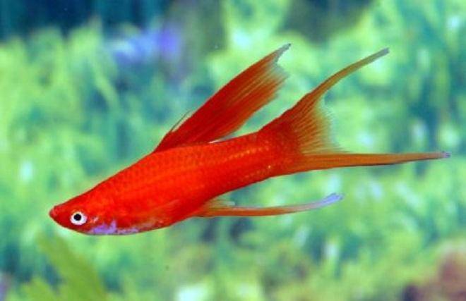 Описание: живородящая рыбка. Спокойная и мирная рыбка. Предпочитают занимать средние слои воды. Тело вытянуто в длину, уплощено с боков. Основной окрас тела красный. Спинной плавник удлинен.