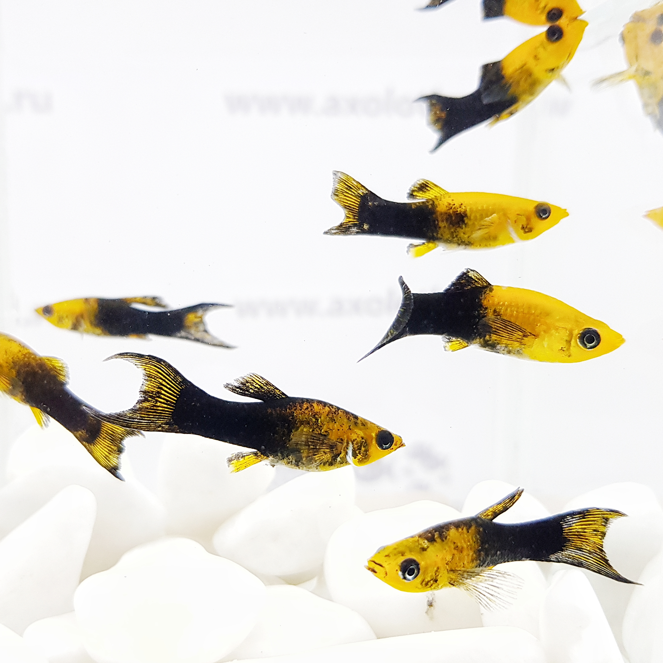Кормление: Моллинези всеядны, питаются как растительной (хлорелла, спирулина, некоторые водоросли), так и пищей животного происхождения. Хорошо принимают сухой корм. Специализированные корма для здоровья и яркого окраса Ваших рыбок можно купить у нас в интернет-магазине.