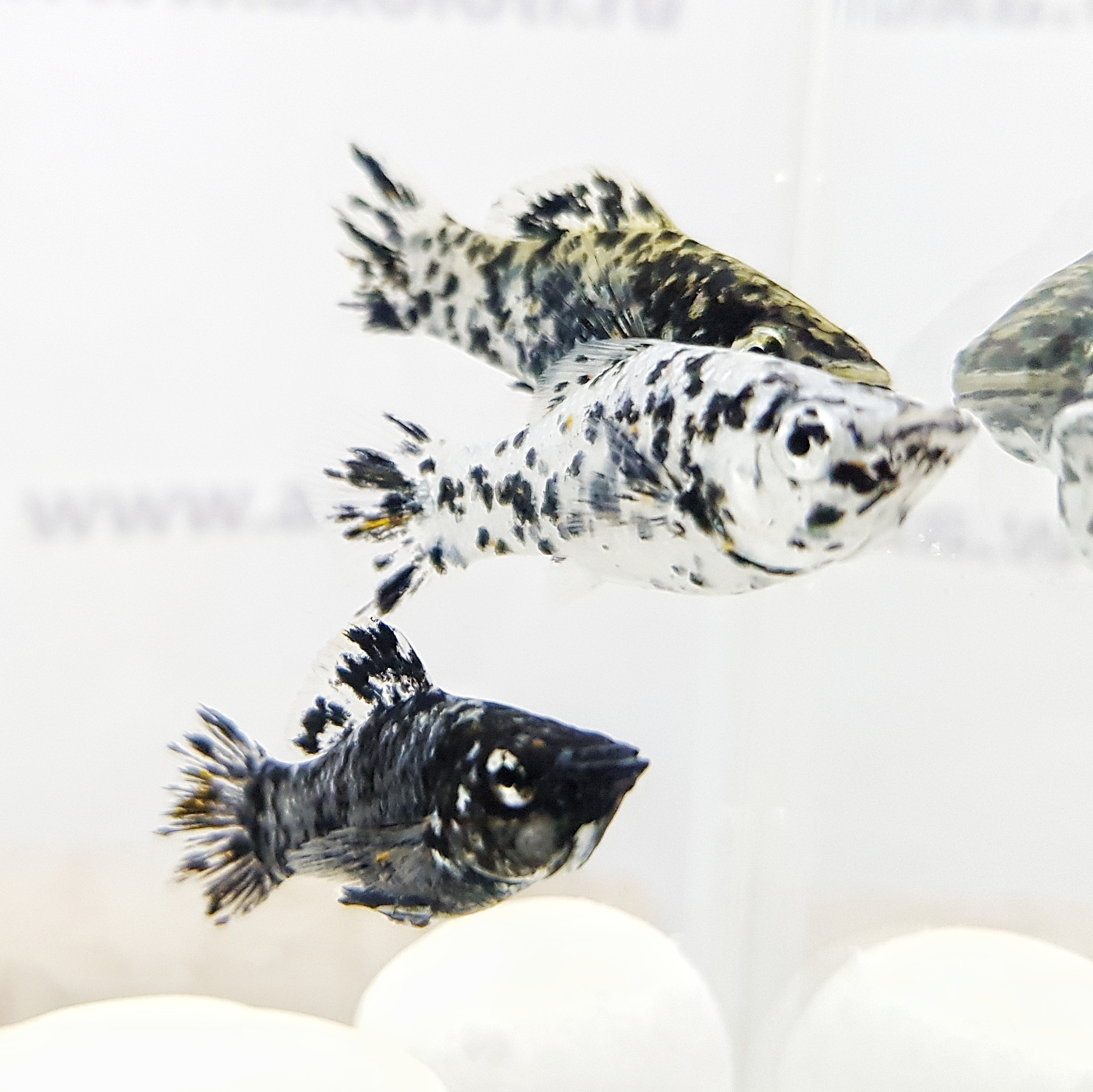Разведение: половозрелыми моллинезии становятся в возрасте 8-12 месяцев. Беременность самки длится около 30- 45 дней. Перед метанием малька самку отсаживают в отдельный аквариум. Приближение родов можно узнать по форме брюшка- становится прямоугольным. Малек рождается уже полностью самостоятельным. Стартовый корм: мелкий живой или сухой корм для мальков.