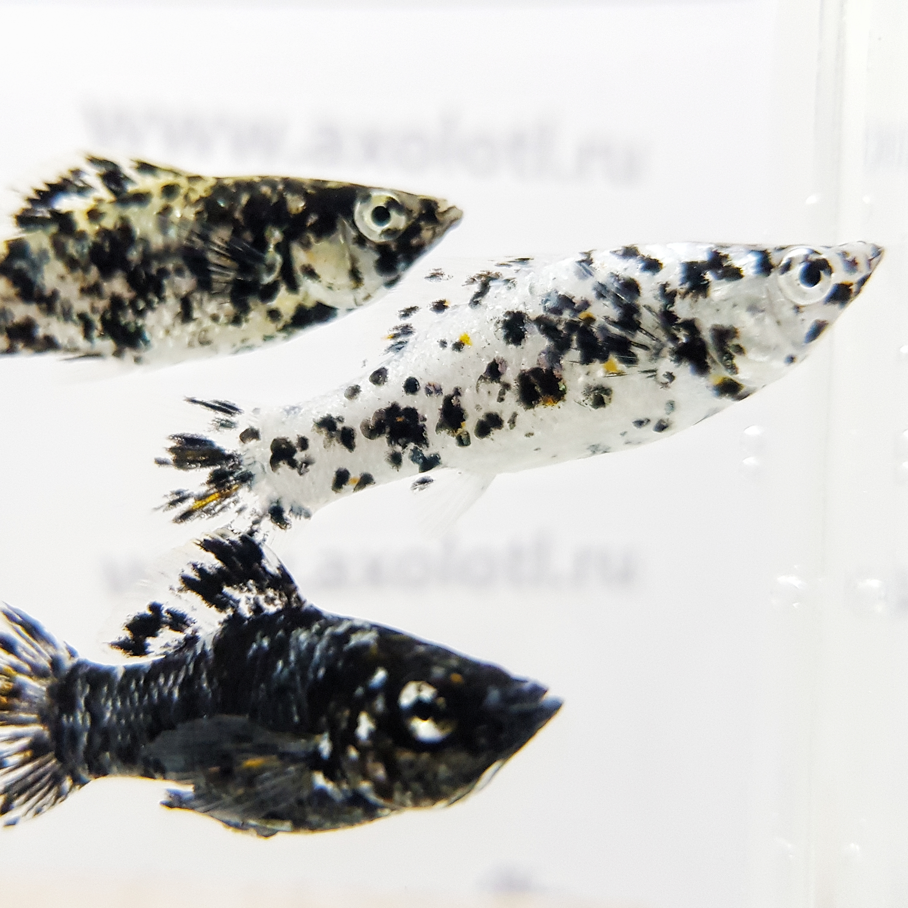 Кормление: Моллинези всеядны, питаются как растительной (хлорелла, спирулина, некоторые водоросли), так и пищей животного происхождения. Хорошо принимают сухой корм. Специализированные корма для здоровья и яркого окраса Ваших рыбок можно купить у нас в интернет-магазине.
